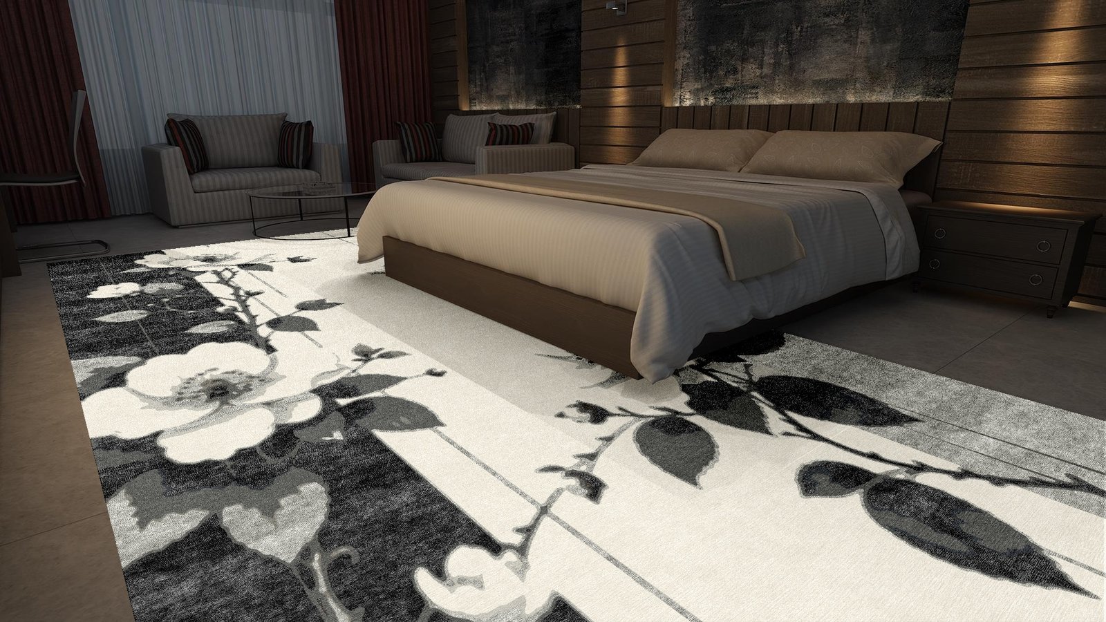 Midnight Bloom is a poetic expression of elegance, hand-knotted in a luxurious blend of fine New Zealand wool and botanical silk. This monochrome masterpiece features delicate floral vines gracefully climbing across a canvas of soft ivory and shadowy charcoal, reminiscent of blossoms unfolding under moonlight. The wool offers a rich, velvety foundation, while the silk threads add subtle luster, illuminating each petal and leaf with refined depth. Timeless and tranquil, Midnight Bloom brings a sense of calm sophistication to both modern and classic interiors.